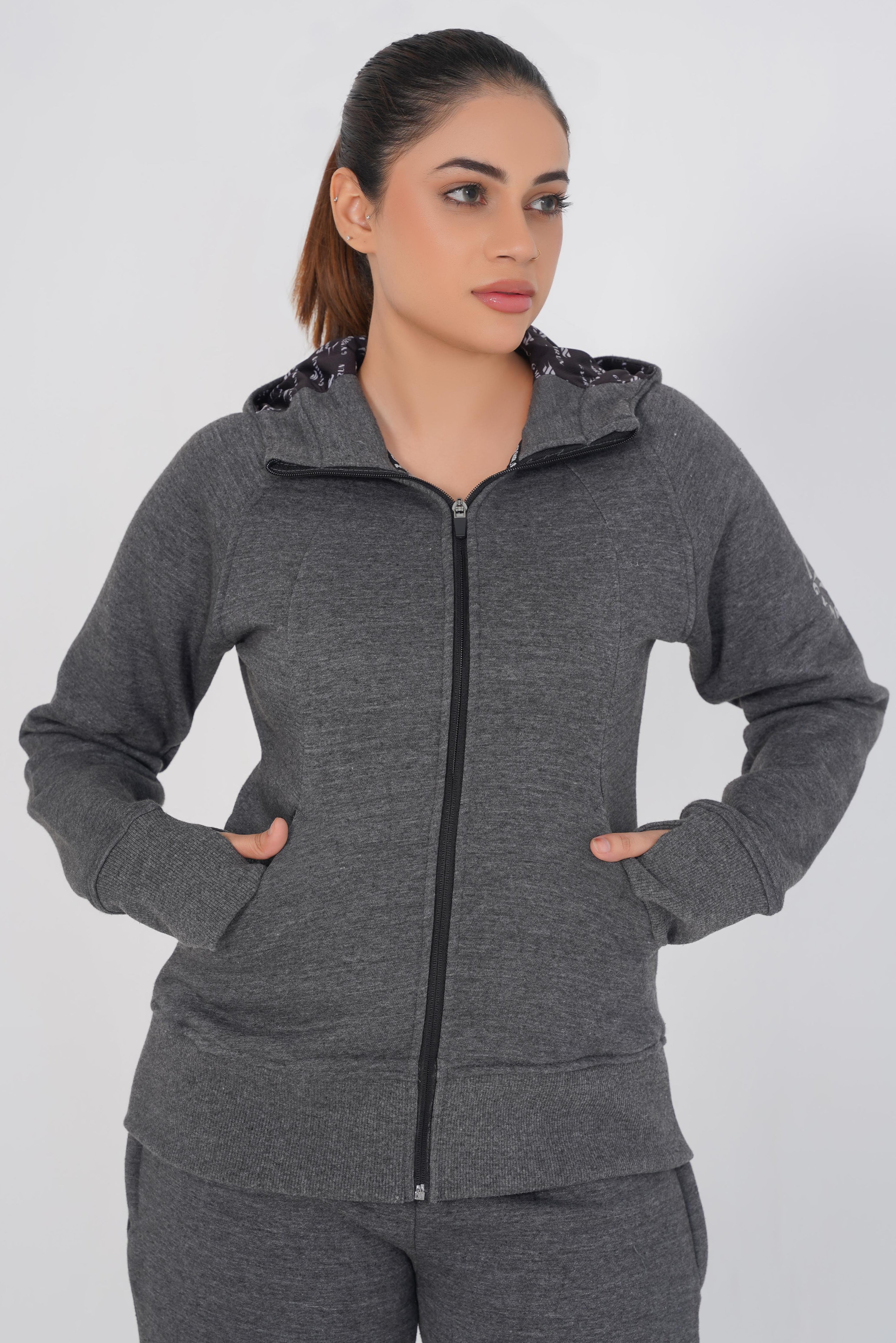 Heavy Cotton Fleece with really soft feel construction For heavy winter season - Cropped length - Long sleeve - Hooded with front zipper - Reflective accents