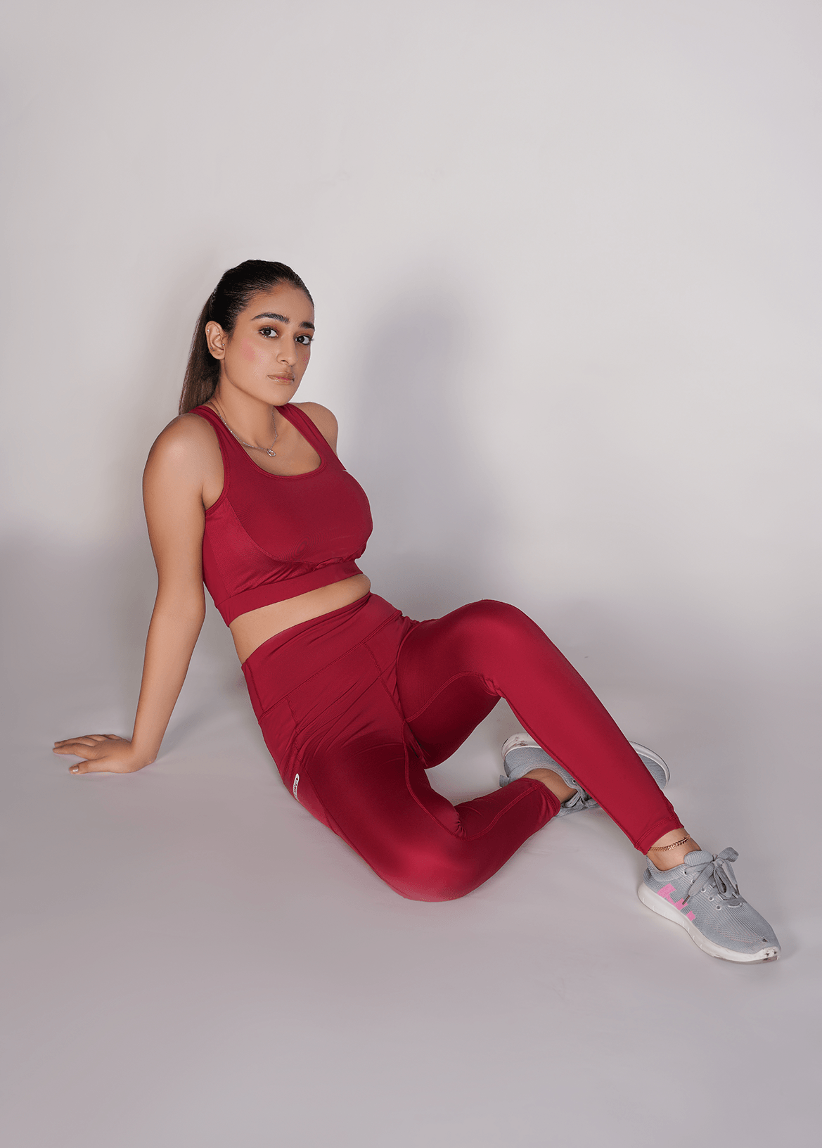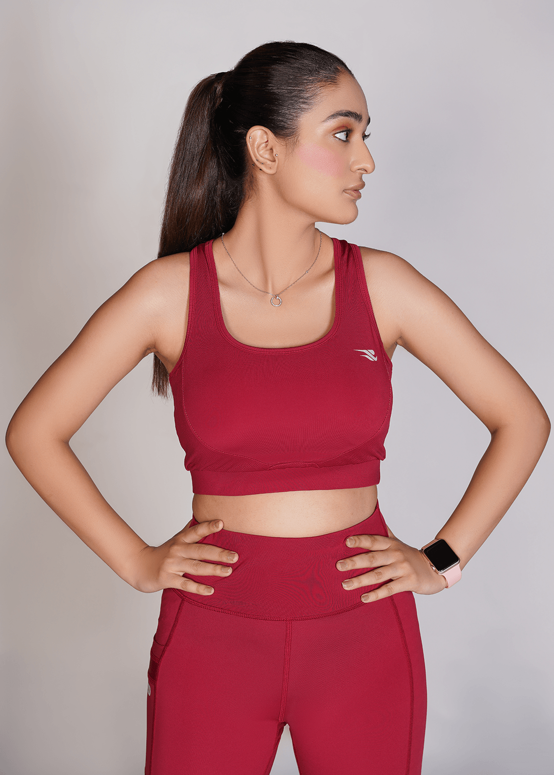 Flexi – Fit Mesh Sports (Sports Bra + Legging) with Pocket - Maroon
