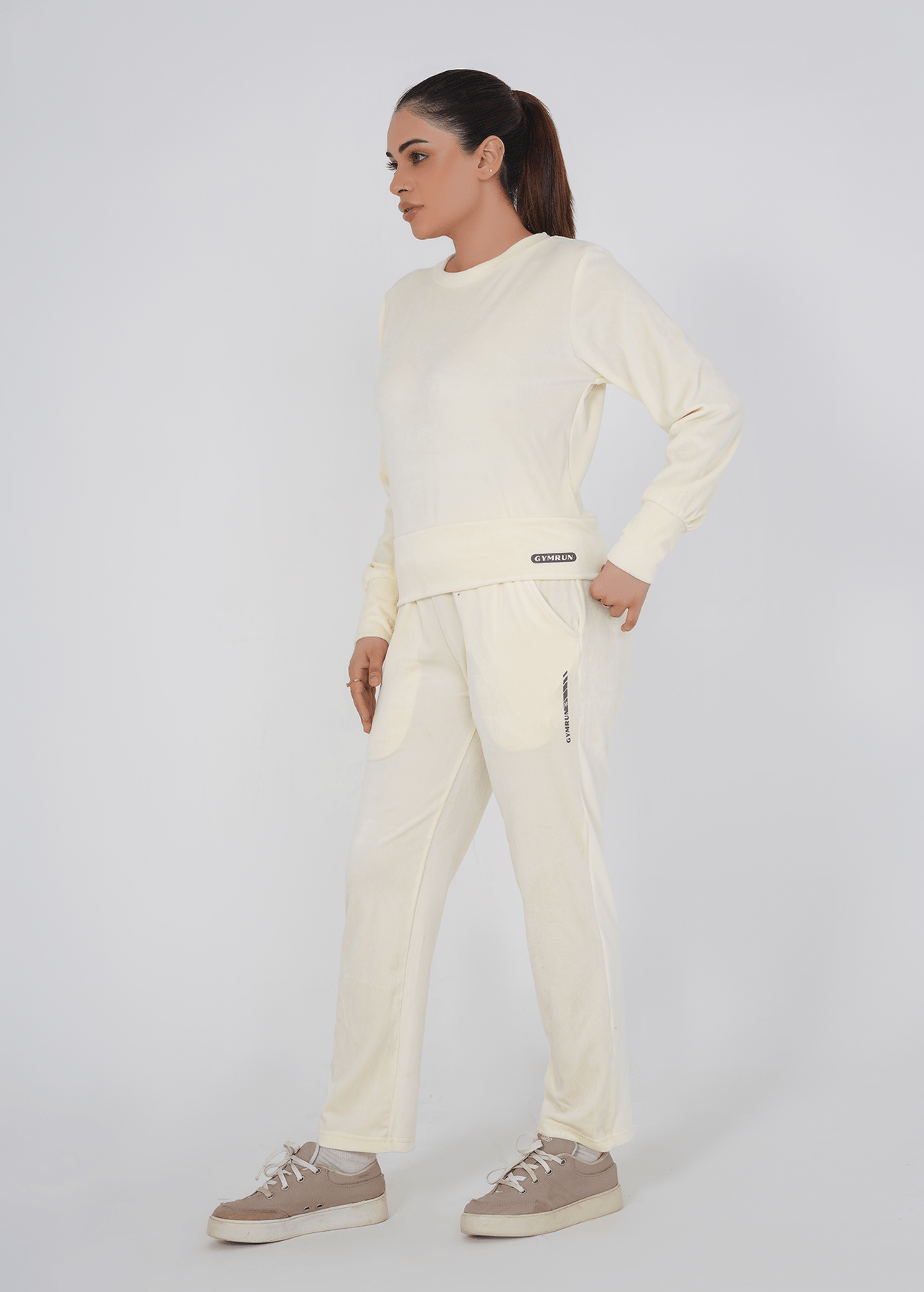 Ribbed Velvet construction For Optimum look - Cropped length - Long sleeve - Crew neck - Reflective accents